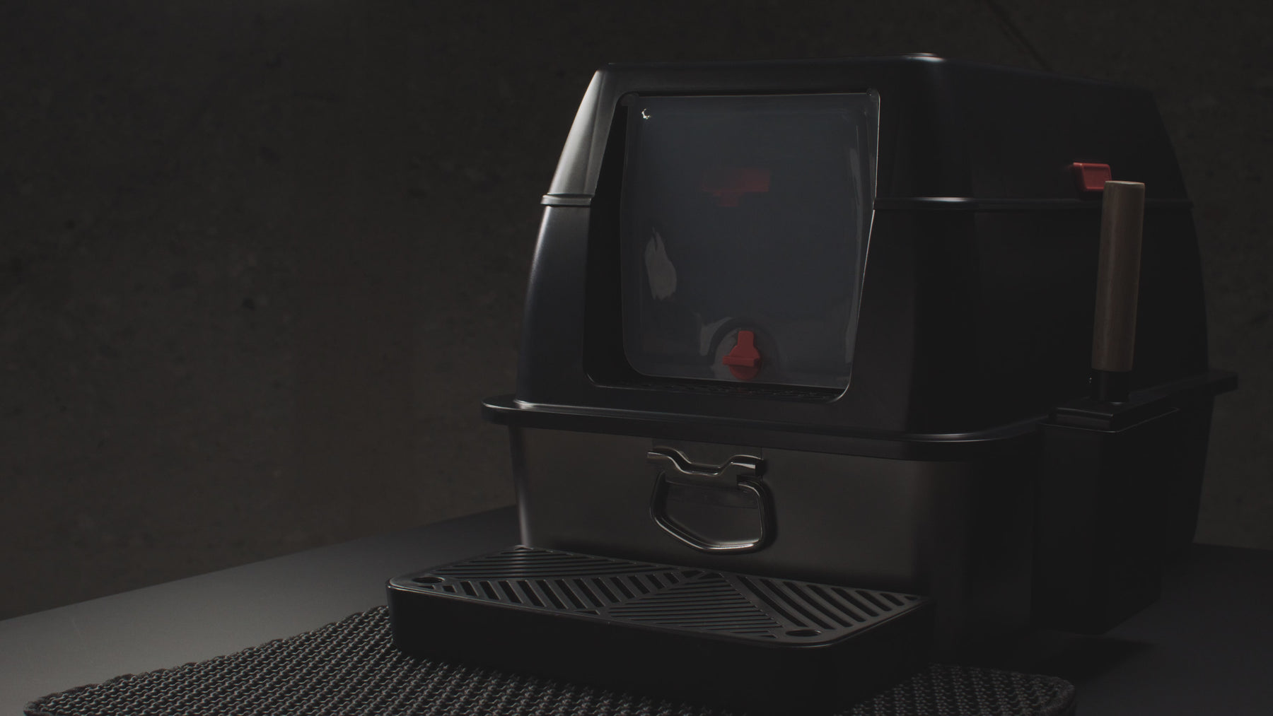 Bei der Entwicklung war uns an dieser Stelle der zweite Ausgang im Deckel wichtiger, um das natürliche Verhalten im Mehrkatzenhaushalt zu fördern.